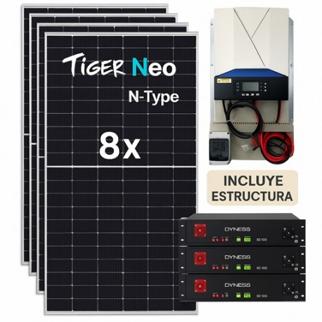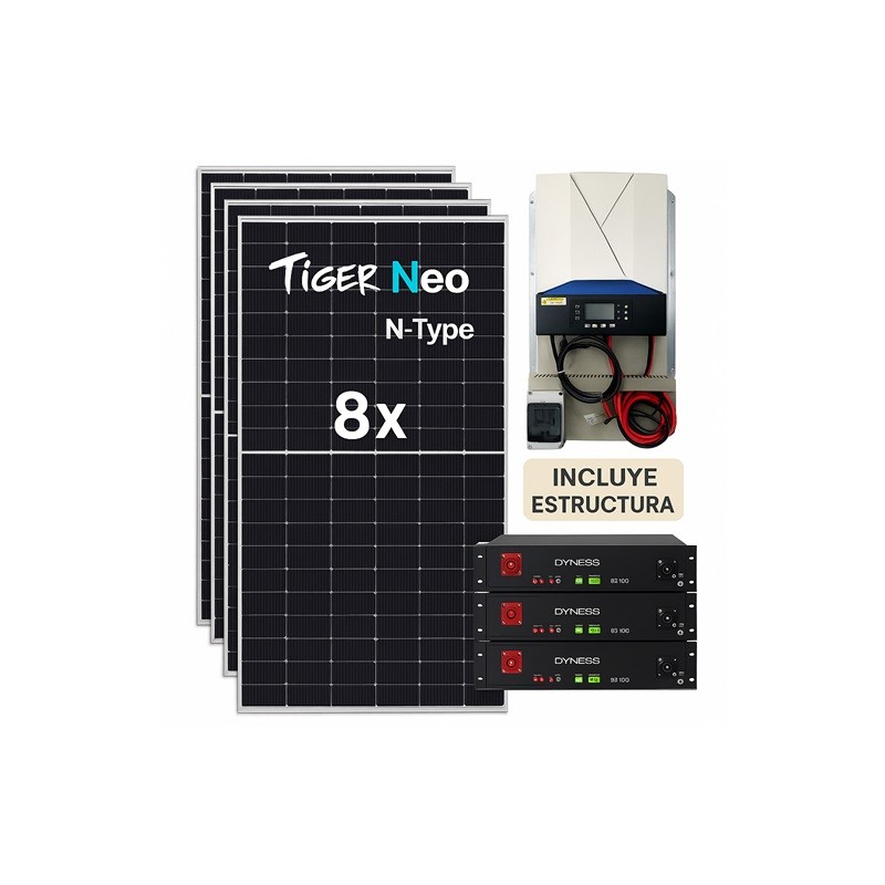 En los meses de mayor radiación (Marzo a Septiembre), nuestro Kit LITIO PRO II puede llegar a otorgar casi 10000Wh/día (las 4 baterías acumulan 9600Wh/día), triplicando la producción solar y permitiendo que durante las horas de sol se puedan conectar equipos con mayor consumo de lo estimado porque la energía sería suministrada desde los paneles solares directamente al consumo por nuestro inversor híbrido sin pasar por baterías.